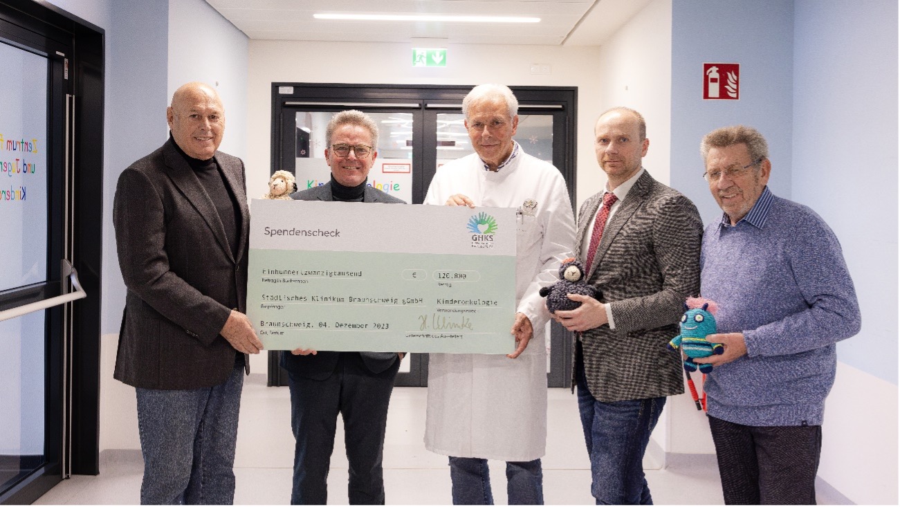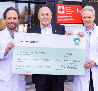 Henrik Klimke, Vorstand der Günter Hansmeier Krebsstiftung, und Dr. Thomas Bartkiewicz, Ärztlicher Direktor des Klinikums Braunschweig, betonten übereinstimmend, „dass diese Förderung in Zeiten mangelhafter Krankenhausfinanzierung und schwieriger Personalakquise im Krankenhaus einen bedeutenden Beitrag zu einer qualitativ hochwertigen Versorgung onkologisch erkrankter Kinder in der Region Braunschweig darstellt“.